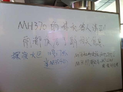 据央视记者报道:马来西亚航空公司将在北京丽都饭店召开记者会,介绍马来西亚航班失联事件情况。首都机场通知MH370航班接机家属前往丽都饭店了解最新进展。